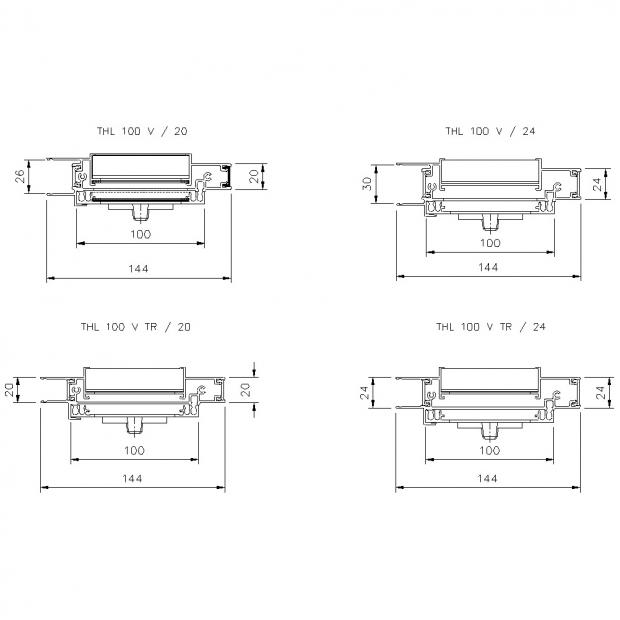 - De THL 100 is een op maat gemaakt, thermisch onderbroken schuifrooster met lamellen dat horizontaal geplaatst wordt. Dit schuifrooster is niet geschikt voor plaatsing in de dichte omgeving van zeewater en strand.
